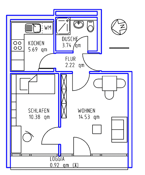 2 Zimmer, Küche, Dusche, Loggia, Aufzug, Tiefgarage, 5. Ebene